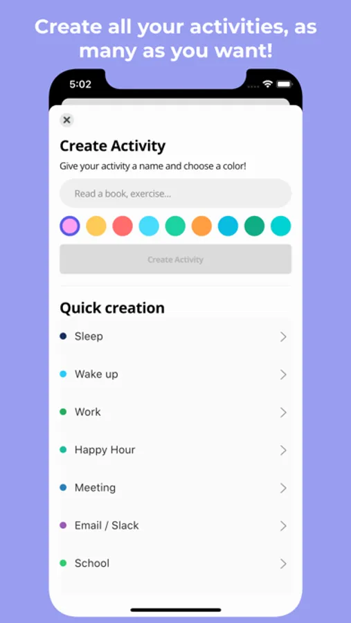 The activities are the basis of everything. Inside them, you have a bunch of features that make it one of the best life planner, daily planner free & organization apps: