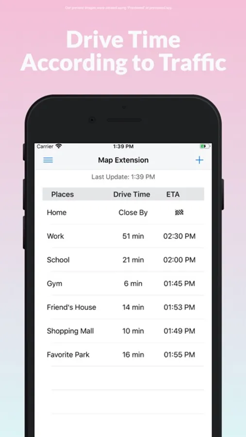 This App shows the drive time from your current location to all your saved locations and calculates the ETA for you.