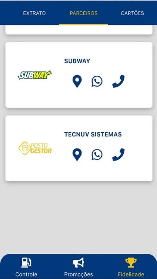 - Informações dos parceiros dos Postos de Combustíveis dos quais trazem benefícios exclusivos ao cliente final.