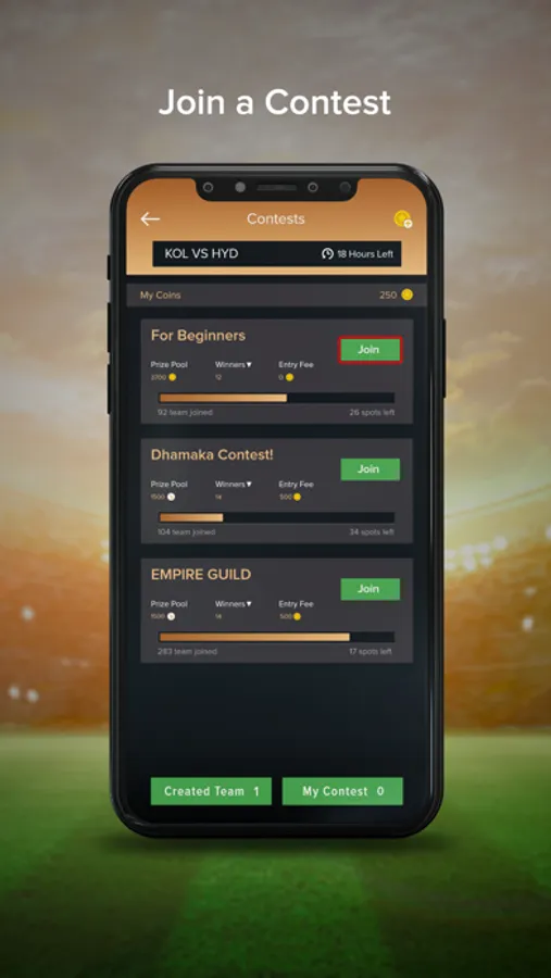 The user who scores the maximum points in their joined contests attains the first rank on the leader-board. Game Plan offers both free and paid contests.