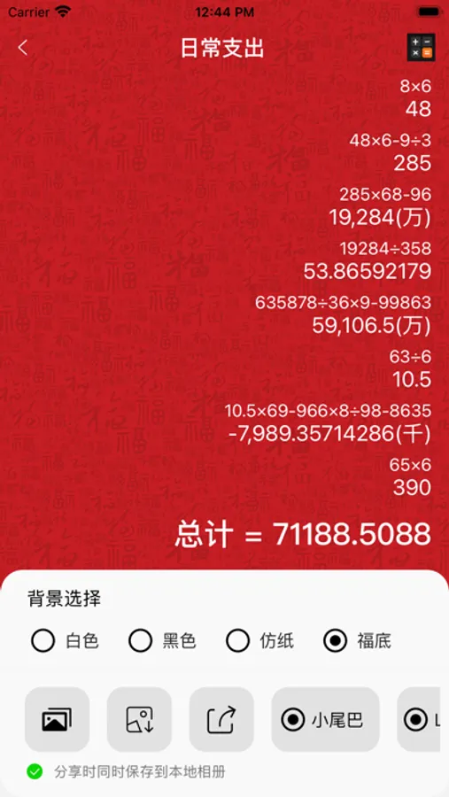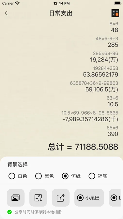 计算历史不仅可以储存在本地随时查看,还可以生成图片分享给朋友,赞赞赞;