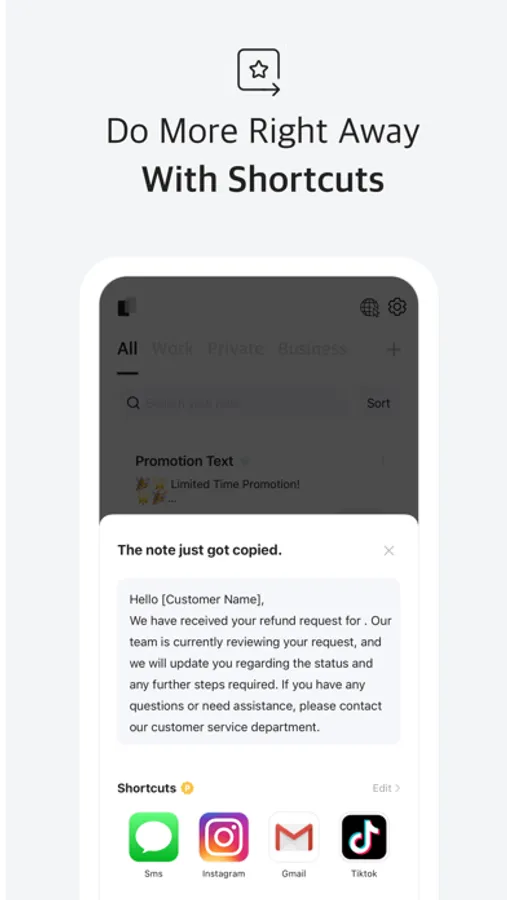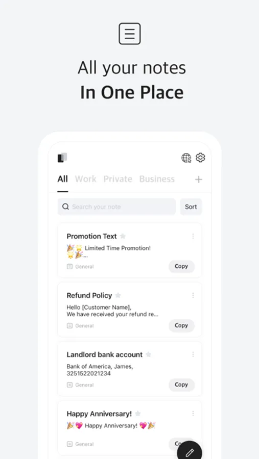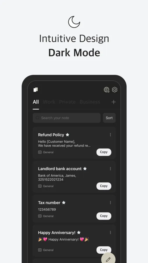 • Make note-taking a breeze with our customizable copying feature. Replace specific words or phrases to fit your unique needs. Perfect for work-related templates or frequently used information.