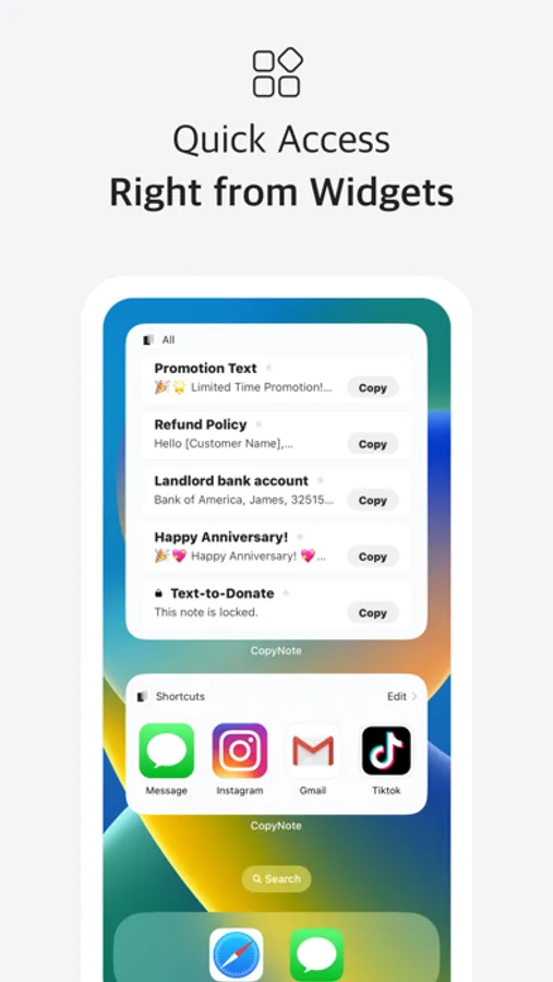 • Save time and effort by copying frequently used information directly from our widget. Our app is designed to streamline your workflow, making it easier than ever to stay on top of things.