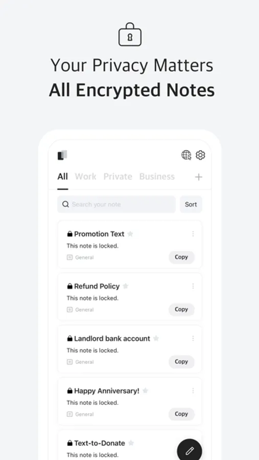 • Keep your private information secure with our locking feature. Simply lock your note, and rest easy knowing your information is protected from prying eyes.