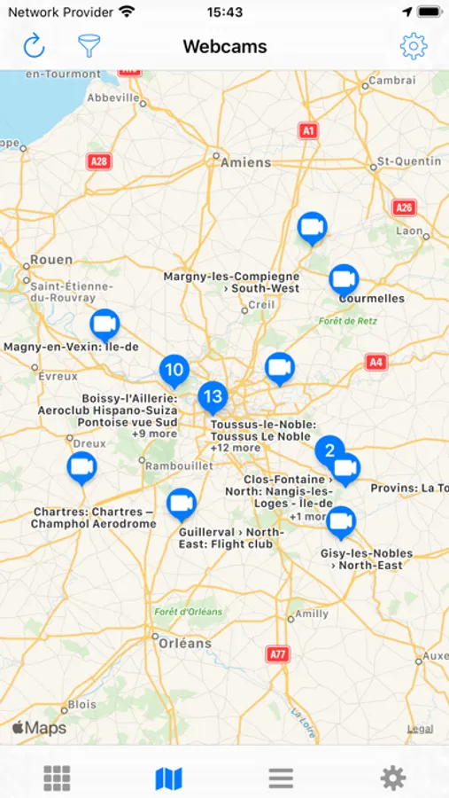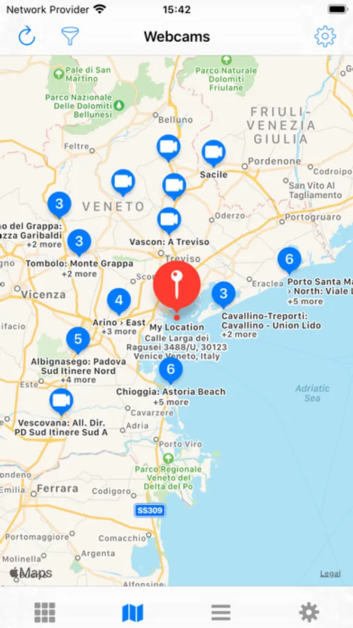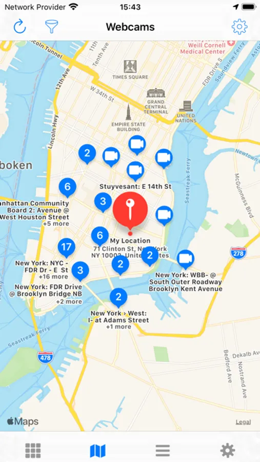 * See webcams nearby on the map. Tap on each pin to get more information.