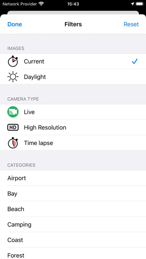 * Filter cameras by several categories, like beach, landscape or traffic.