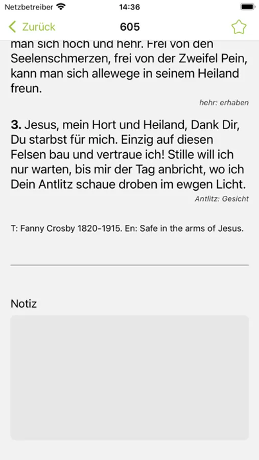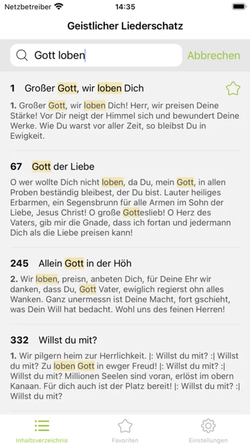 Egal wo du bist, wenn du gerade deinen Geistlichen Liederschatz nicht dabei hast, öffne einfach diese App und singe zu Gottes Ehre.