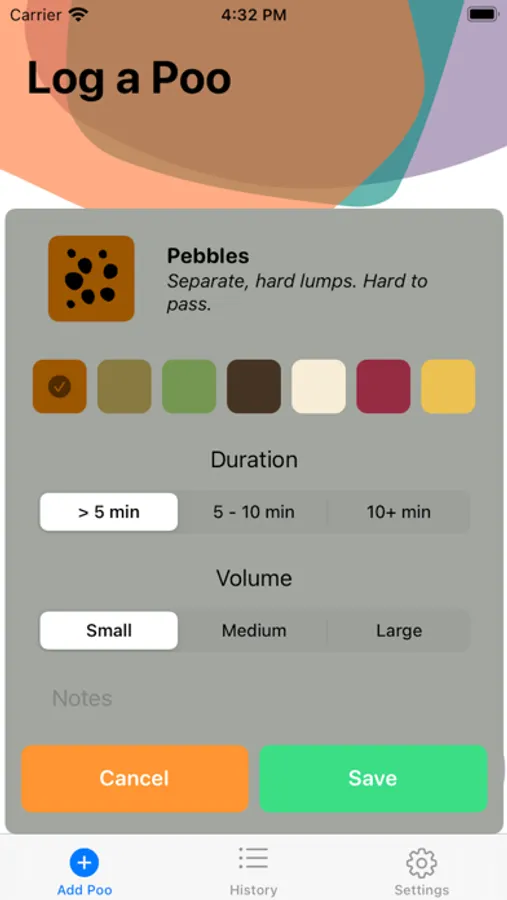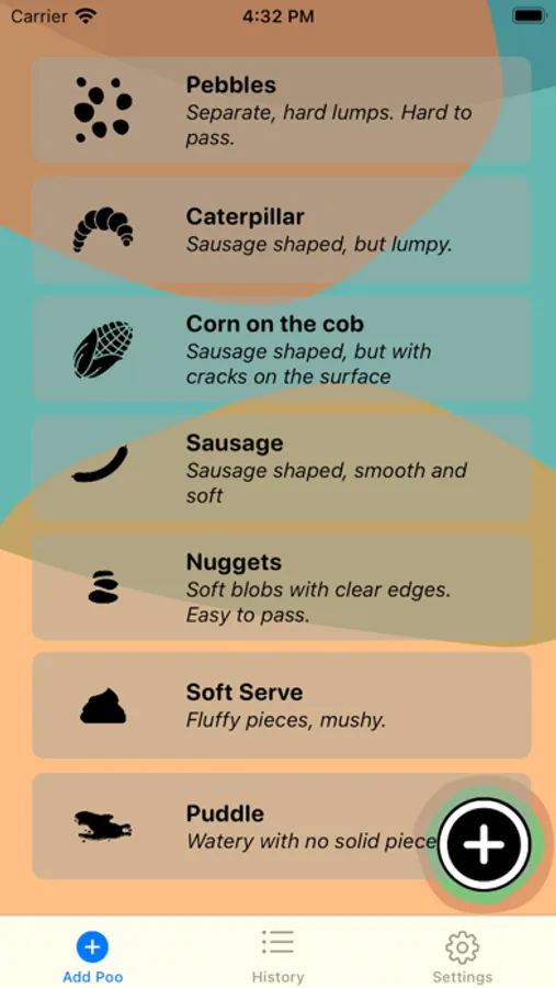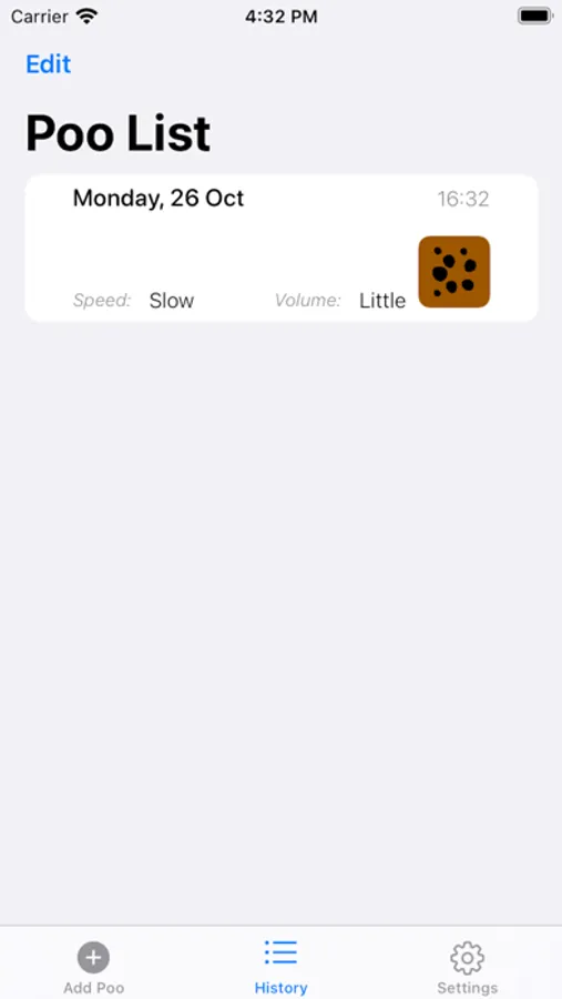 DueDoo allows you to log your bowel movements, using the Bristol Stool Scale. As you log your poops, over time DueDoo will be able to provide you helpful information you may share with your doctor, or just keep track of your bowel movements.