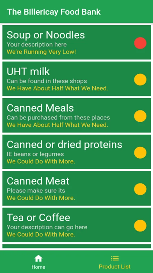 This app displays a list of products that the food bank accepts ordered by their current priority.