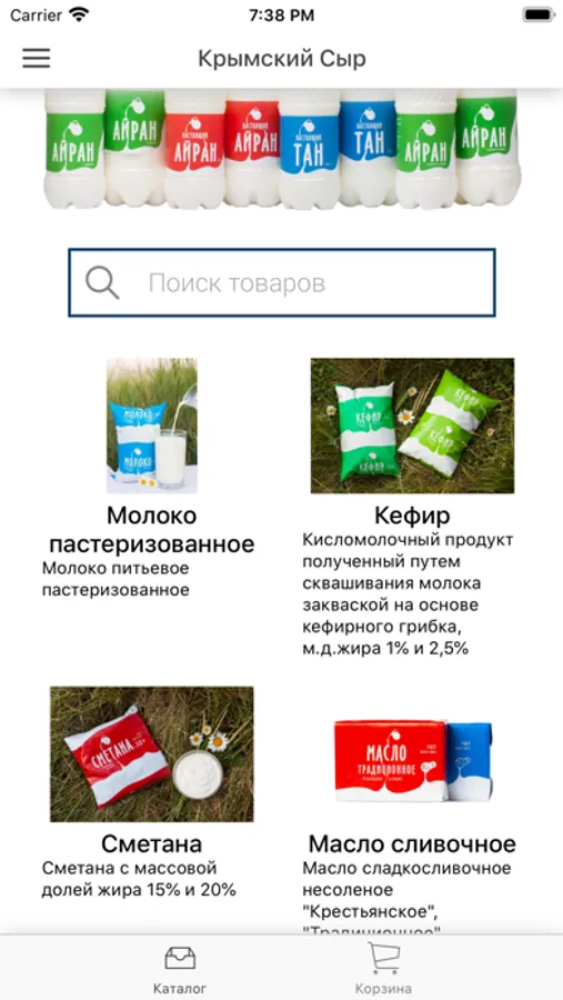 Приложение по заказу доставки молока, сыра и молочных продуктов на Дом.
