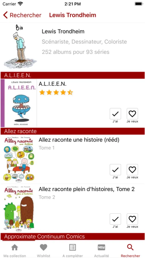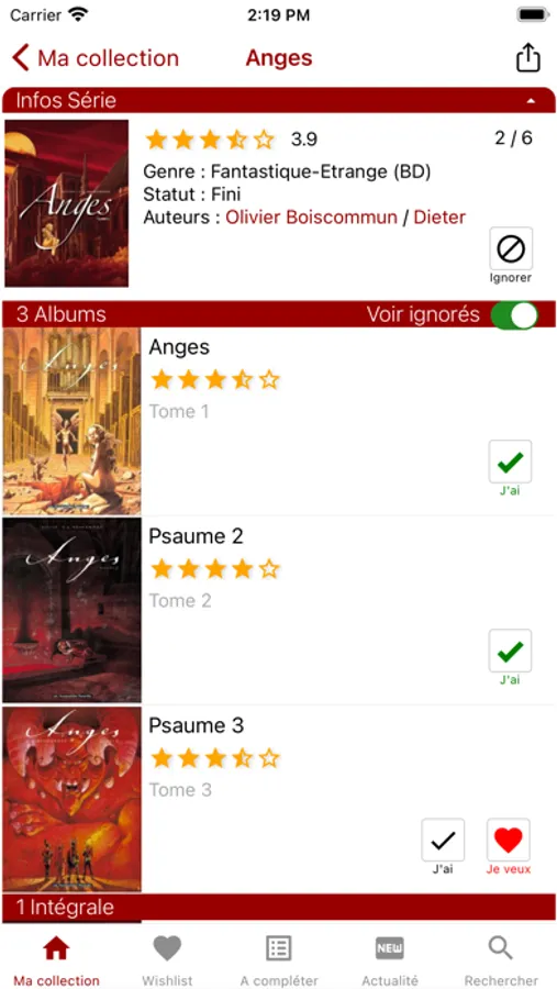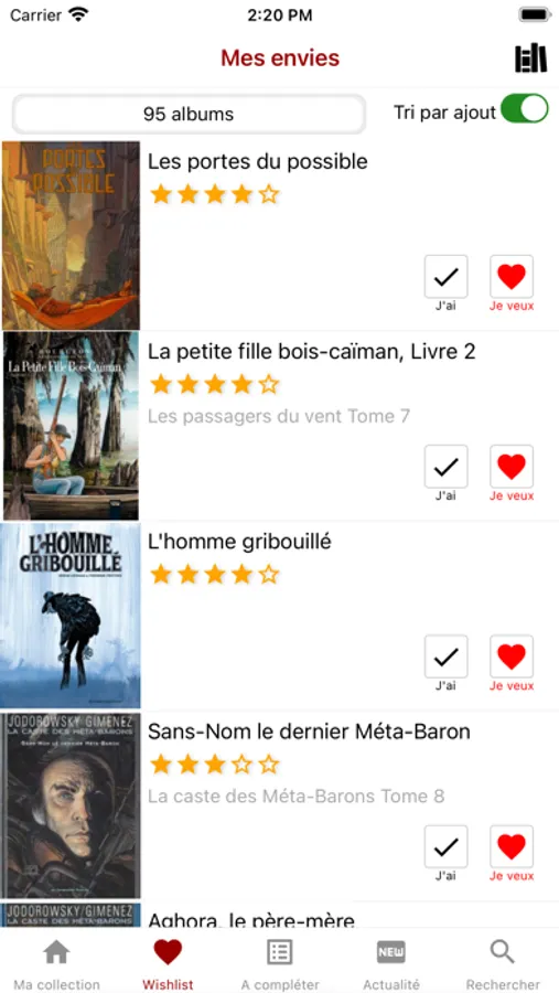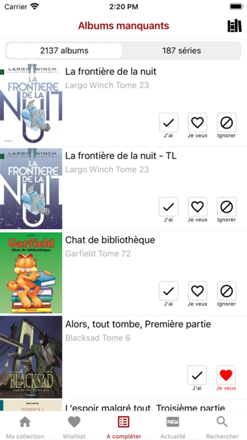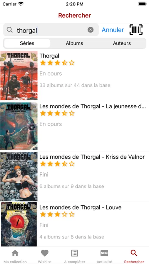 Importez votre liste d'album directement depuis le site ou enregistrez facilement vos BD sur l'application grâce à la recherche ou en scannant le code barre.