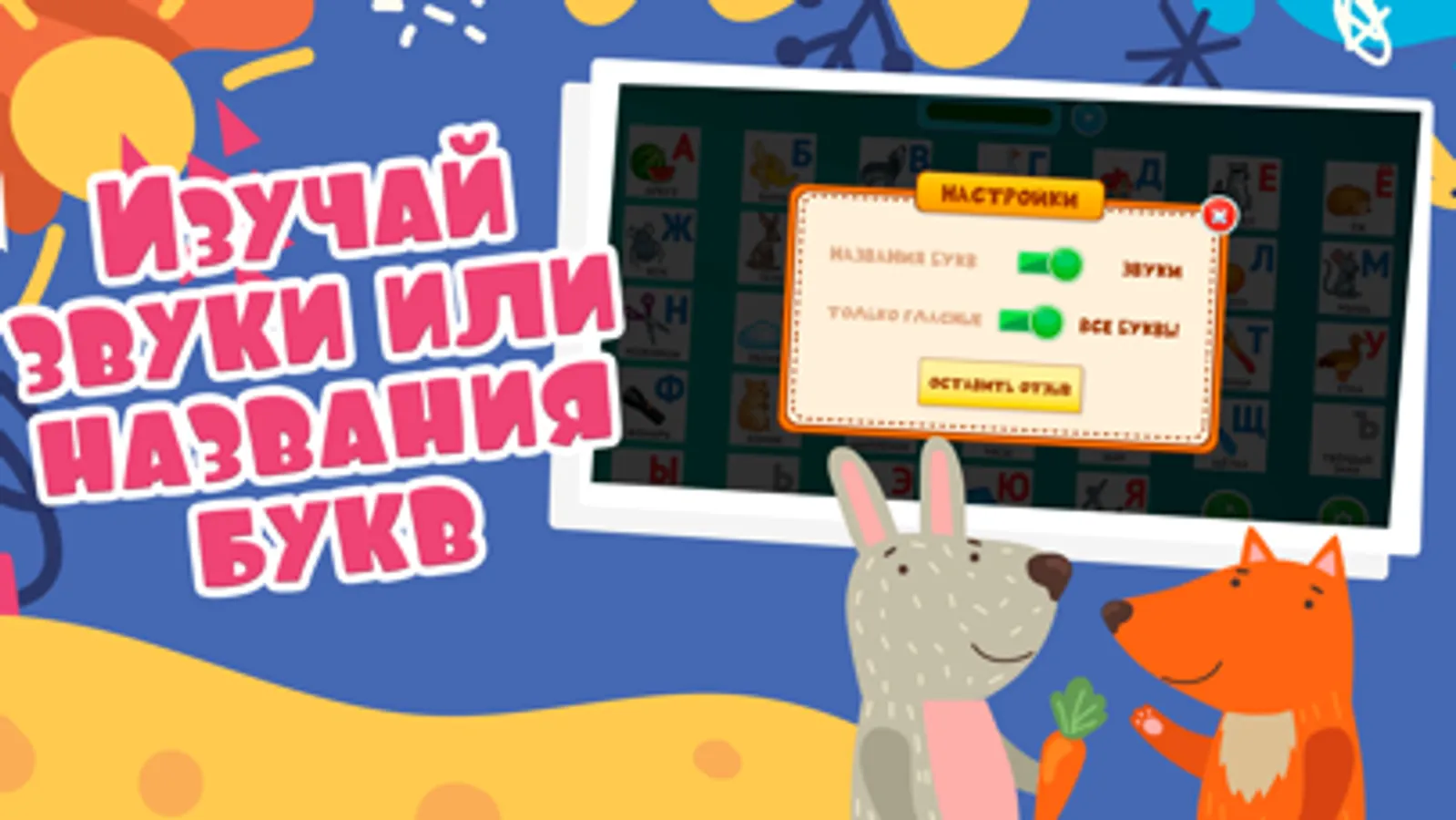 Подходит для обучения без присутствия родителей. Если ребенок забыл букву, приложение ее подскажет.