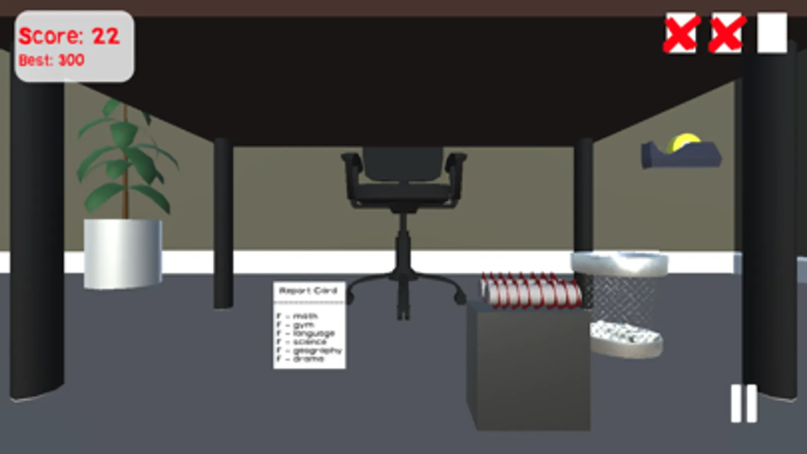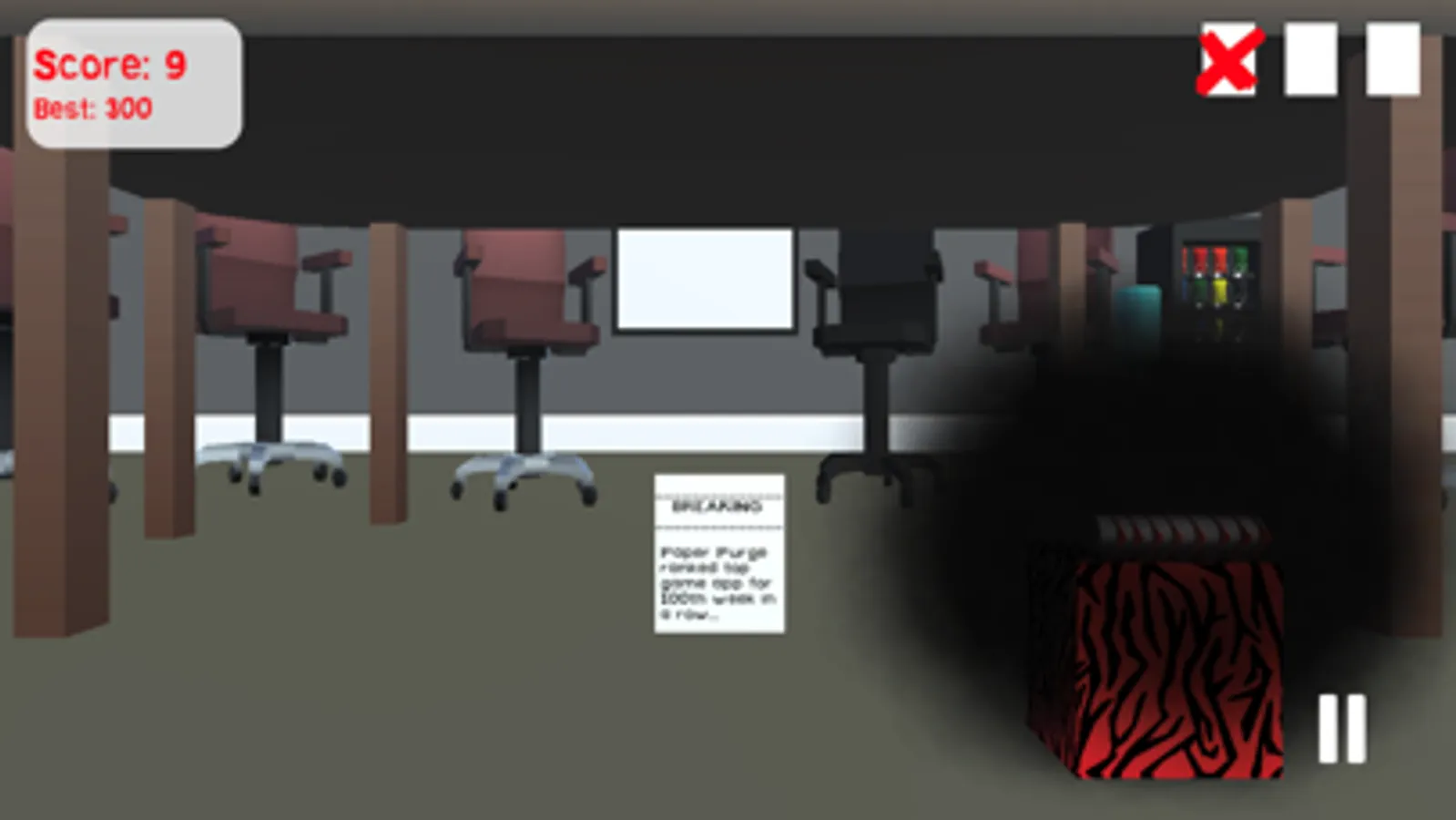 Grab your purger of choice and pulverize every sheet of paper before they fall to the office floor. Either grind falling paper with the Shredder, snip it with the Scissors, strike it with the Laser, or incinerate it with the Torch. With a mix of paper and office items falling off of your desk, you must purge as many sheets as you can, while avoiding the other objects that will destroy your purger.