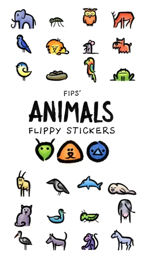 Fips' Animals Stickers is a sticker pack for iMessages – 24 animated stickers show various animals making their sounds: Elephant, mosquito, owl, deer, cuckoo, lion, mouse, dog, bird, rattlesnake, parrot, frog, goat, crow, dolphin, seal, cat, duck, cricket, cow, stork, wolf, monkey and horse.
