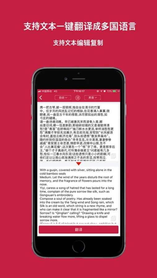 支持9个常用国家文字的扫描识别,29个国家的语言相互翻译,精心设计的排版,便捷快速的操作体验。