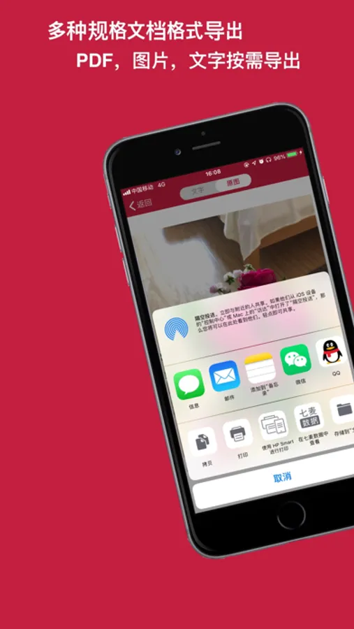 精准人性化的OCR识别功能,标准汉字识别准确度高。无论是手机还是Pad,拍文字、拍文档,拍单词,有疑问扫一下,所见即所得,支持一键 PDF 导出。