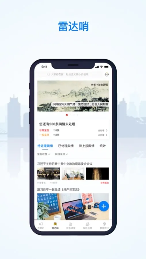 云瞭望是一款针对台州市打造的智慧信息管理平台,本市权威资讯实时发布,发挥新媒体的宣传功能,实现数据信息上报,通过大数据统计,一键生成工作分析报告,让管理工作任务高效流转、执行结果快速实时呈现。(特定人员使用)