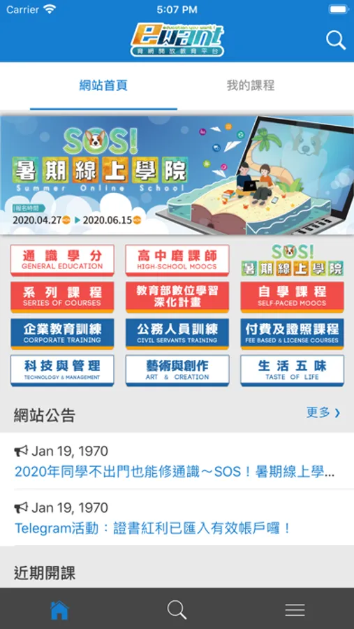 •ewant育網是全臺最大的磨課師平台,擁有96所合作學校,累積超過1800門精彩課程!