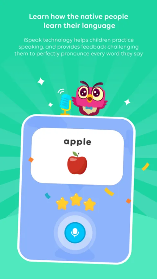 - Children with English pronunciation standard with iSpeak technology: Using Google's voice recognition technology. Grading, fixing errors in time and encouraging children to strongly communicate.