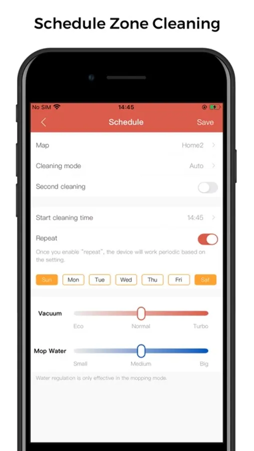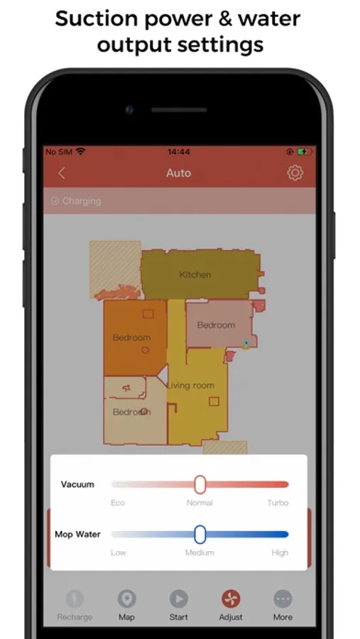 2. Suction power settings and water output levels. This APP allows you to set the power level and water output individually. All cleaning tasks can be done more effectively.