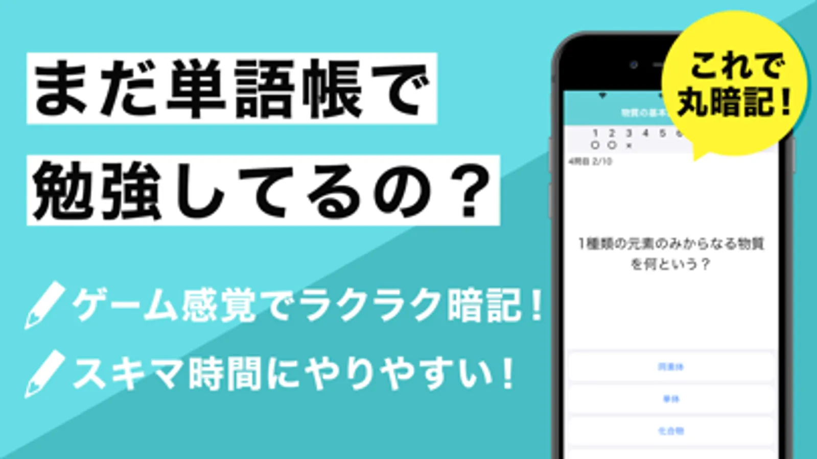 With this app, you can study chemistry in a fun and quiz-like manner!