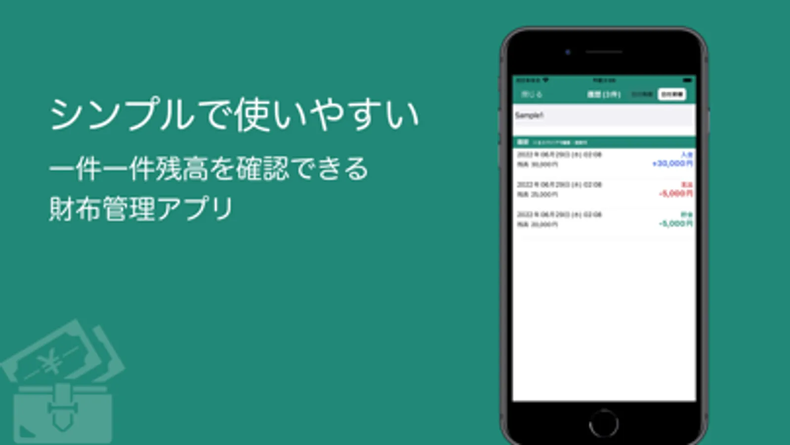 シンプル「財布管理」は簡単操作で財布の残高を把握できる「財布管理」アプリです。