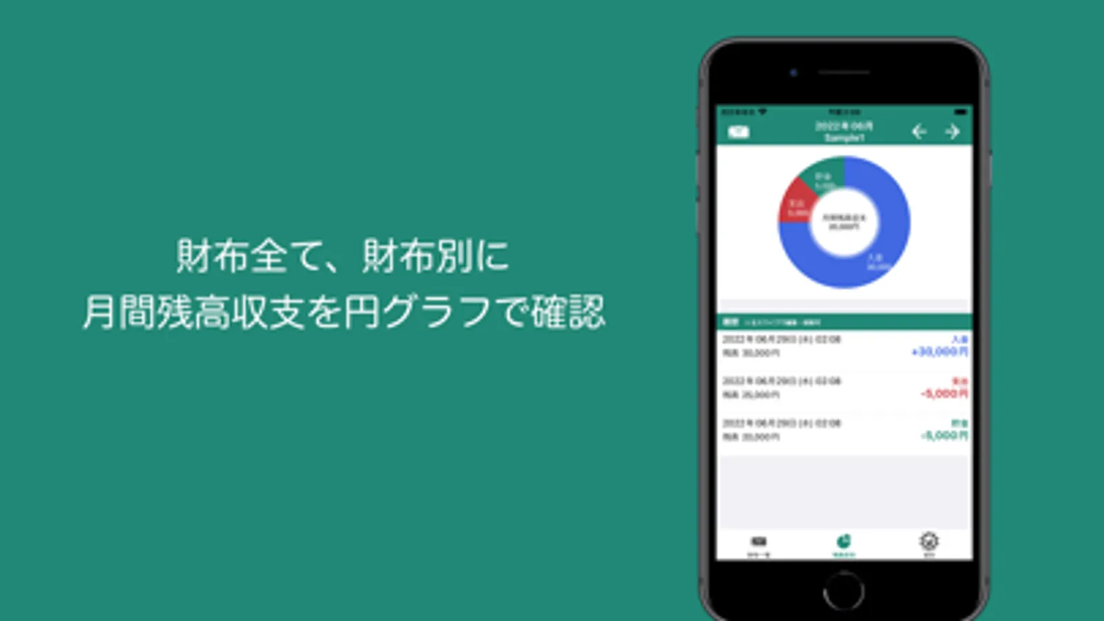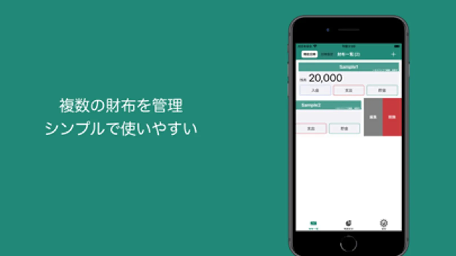 「財布」を複数作成できて財布毎に残高を管理出来ます。