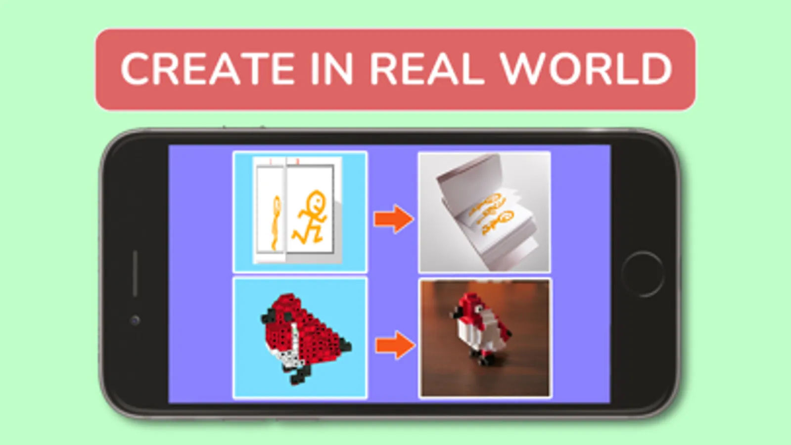 Make objects such as birds, animals, vehicles with simple taps and print them or project them in the real world with Augmented Reality