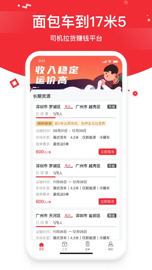 【收入满满】面包车到17.5米大货车都可加入挣钱;