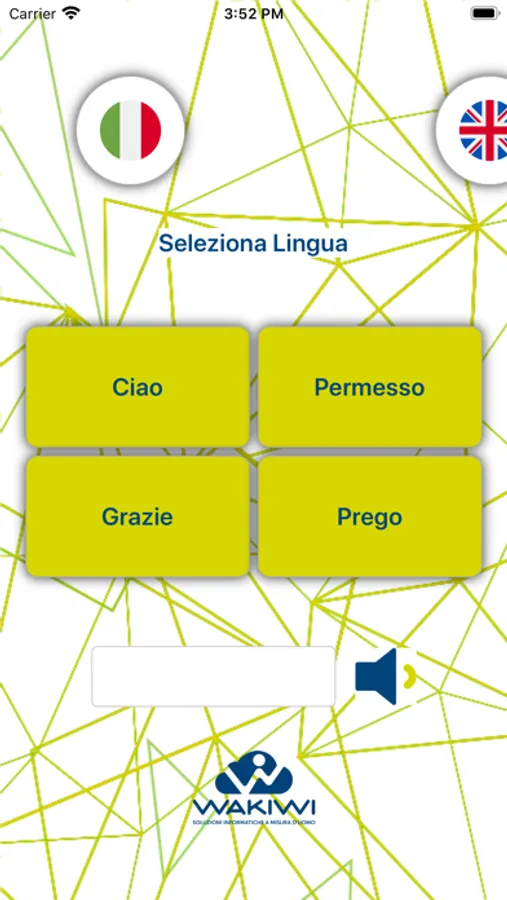 This app permit to reproduce the text on the frame, multilanguages, when we selected one of the language present, the frames change the text in that language, are only 4 simple text , default case is italian, you also have the possibilities to type some text and reprocude it.