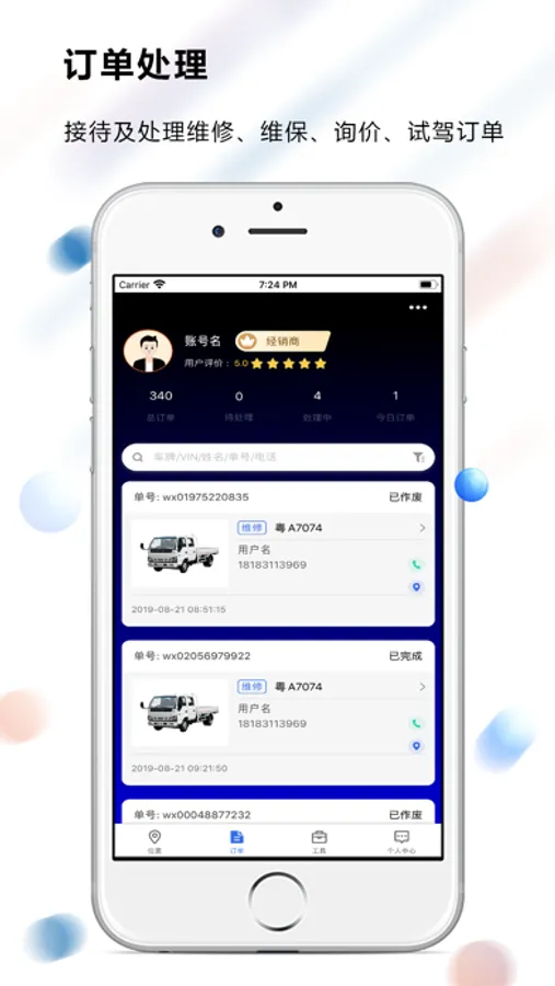 位置服务、订单查询、车辆管理等功能一应俱全。