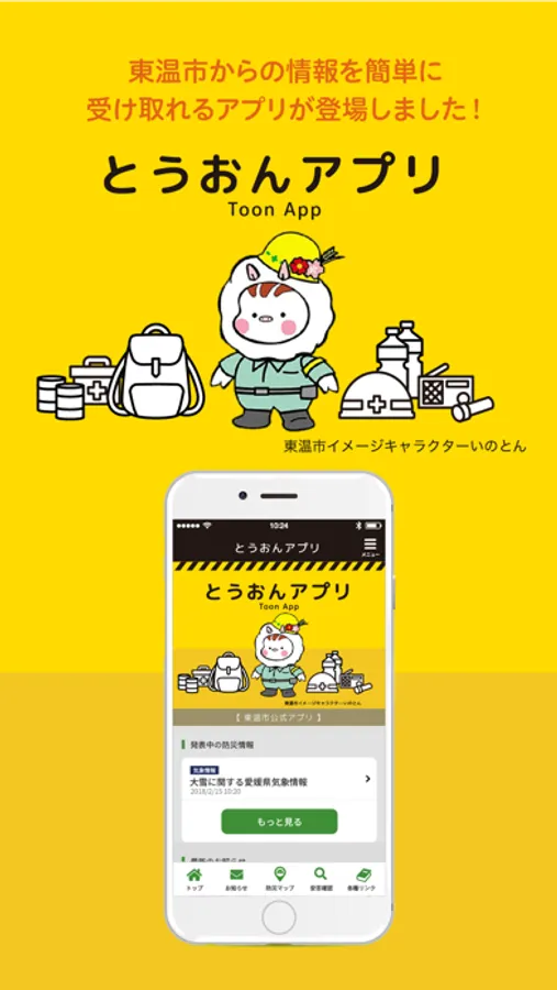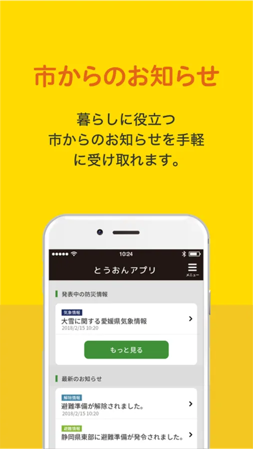 「とうおんアプリ」は、東温市の防災情報や暮らしに役立つ市からのお知らせを手軽に受け取れるアプリです。