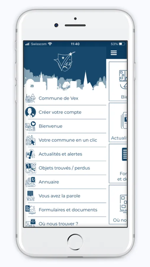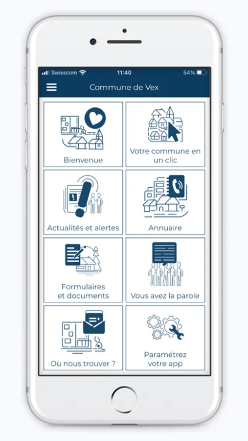 L’application vise en premier lieu à proposer un service d’information à la population intéressée, afin de relayer directement les alertes et nouvelles relatives à la sécurité et aux infrastructures sises sur le territoire de la commune de Vex. En s’inscrivant aux diverses rubriques proposées dans les notifications, les citoyens ou hôtes intéressés reçoivent l’information directement sur leur téléphone portable. Outre cette fonction d’alerte, l’application propose diverses rubriques et renvoie notamment sur le site internet de l’administration communale.