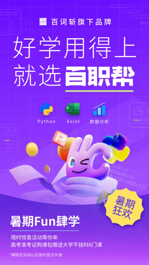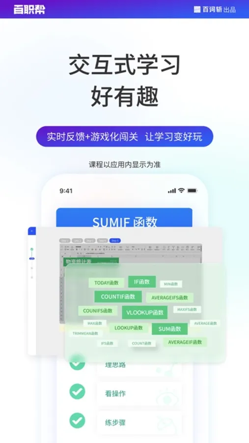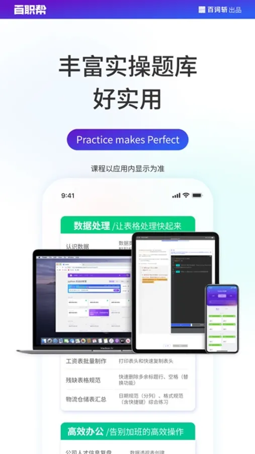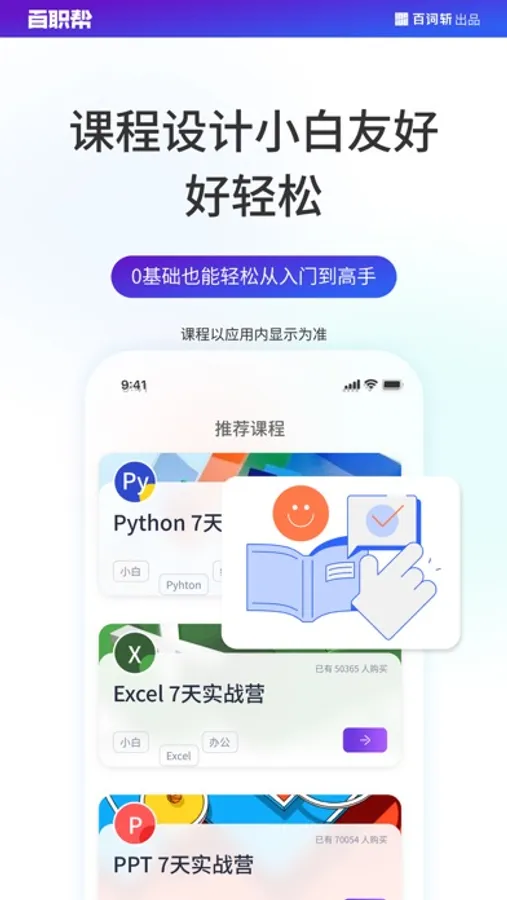 百职帮是百词斩旗下的职场技能学习平台,涵盖夜曲编程、百职帮office、百职帮数据分析等多类课程,帮助更多市场人学会自己想学的技能,实现职场理想。
