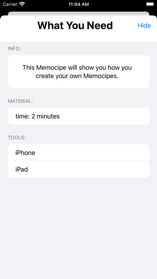 Memocipe is a universal documentation tool to store all kind of instructions. Be it cooking, baking, repairing, DIY work or some basic How-To.