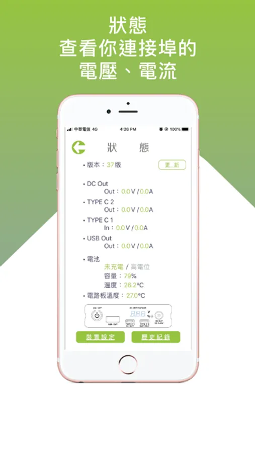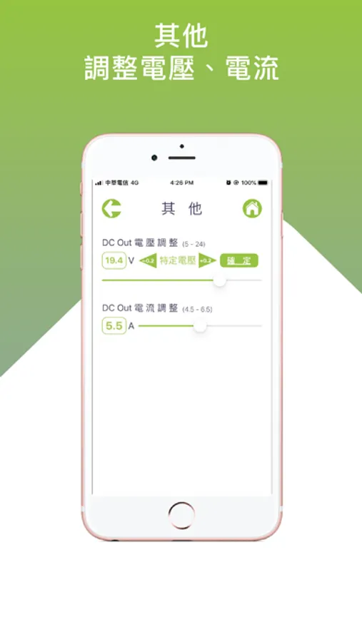 DhilosPower 智慧行動電源的APP,幫助您查看連接埠電壓電流。調整DC out 電壓(5v-24v)