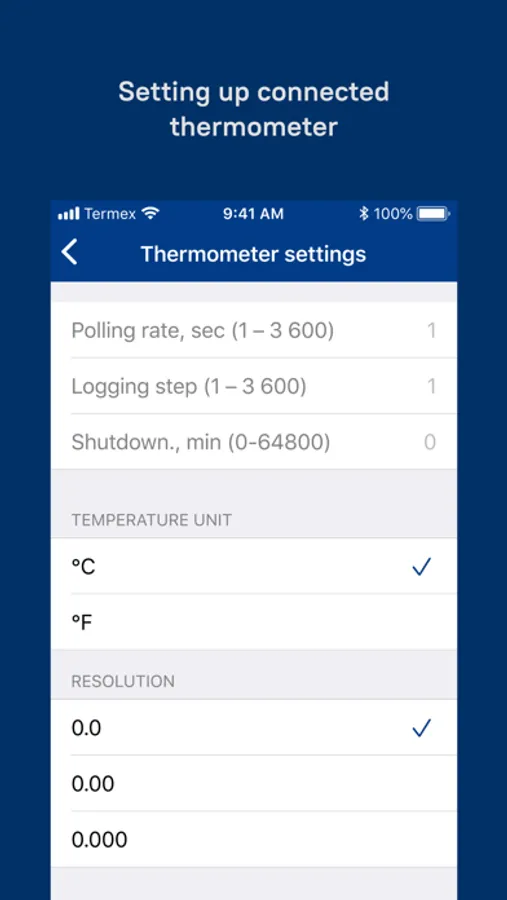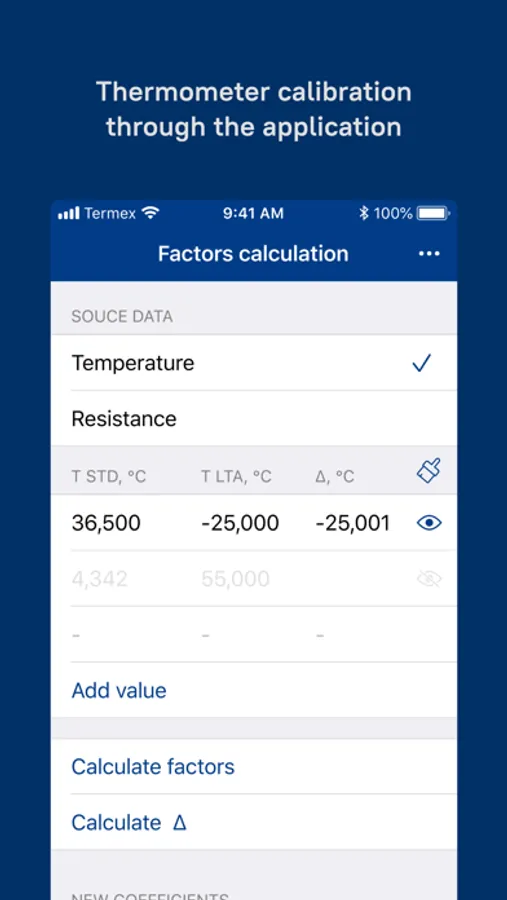 The application extends the capabilities of LTA thermometers, allowing you to record temperature changes over time in the memory of smartphones.