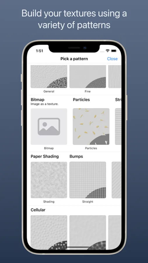 - 6 basic patterns like stripes, bumps and Perlin noise