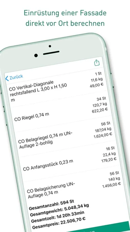 Der MJ GERÜST-Kalkulator verwendet die Internet-Verbindung Ihres Telefons, um die eingegebenen Daten zu bearbeiten. Kosten für mobile Daten können dabei anfallen. Kontaktieren Sie Ihren Mobilfunkanbieter für Details.