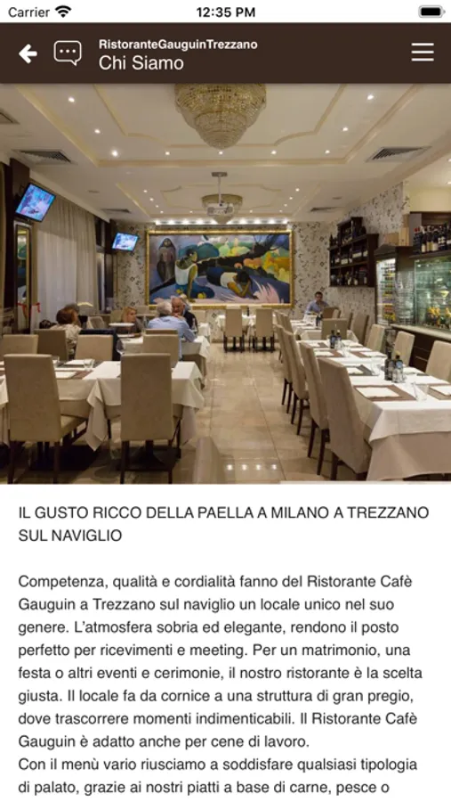 Competenza, qualità e cordialità fanno del Ristorante Cafè Gauguin a Trezzano sul naviglio un locale unico nel suo genere. L’atmosfera sobria ed elegante, rendono il posto perfetto per ricevimenti e meeting. Per un matrimonio, una festa o altri eventi e cerimonie, il nostro ristorante è la scelta giusta. Il locale fa da cornice a una struttura di gran pregio, dove trascorrere momenti indimenticabili. Il Ristorante Cafè Gauguin è adatto anche per cene di lavoro.