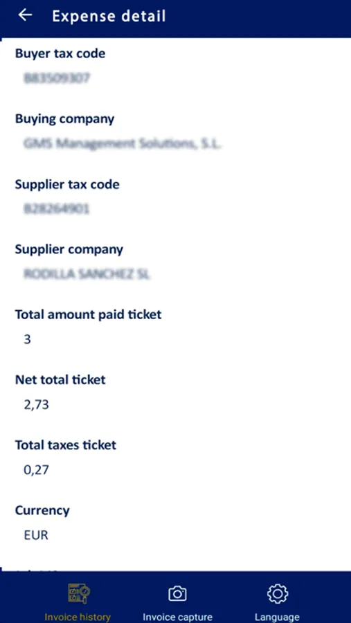 The app has a historical data repository allowing users to view both the receipts already sent to the system and those pending submission, and includes features such as: editing, correcting and expanding the information captured by the camera, specifying the expense type, analytical categorizing, and adjusting and modifying the amounts.