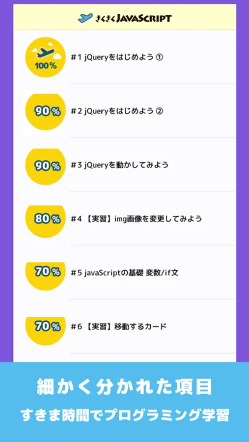 「さくさくJavaScript」はJavaScriptプログラミングの学習アプリです。