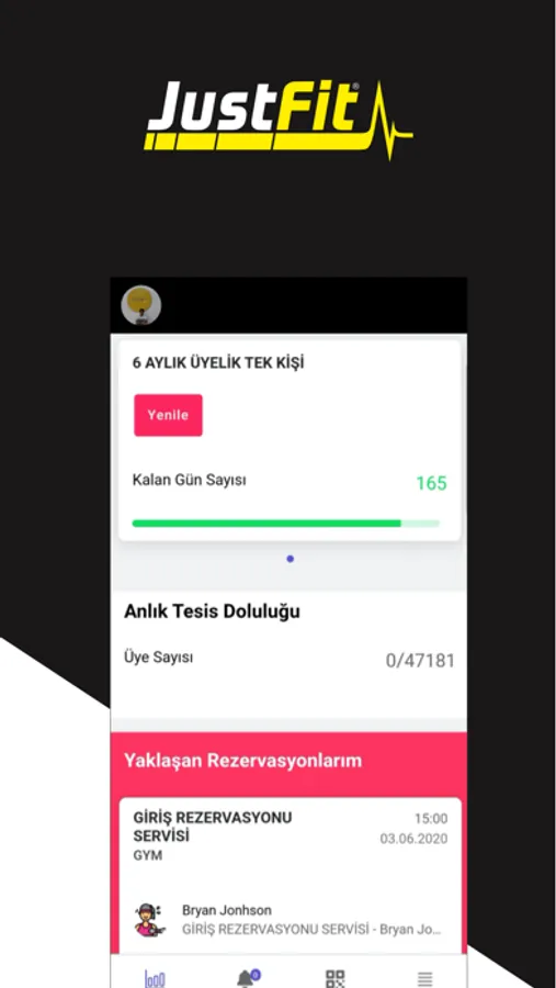 justFit üyeliğinizi yönetmek için kullanılan bir IOS uygulamasıdır. Müsteri Programları, Ölçümleri, Rezervasyon Alma, Hizmet Satın Alma, Stüdyo Ders İşlemlerini gerçekleştirebilen Senkron Yazılım tarafından üretilmiş bir IOS uygulamasıdır.