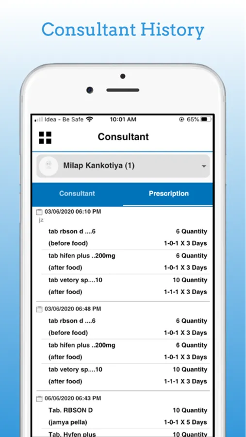A simple portal for the user and their family to see future time slots. The user's whole appointment history is also available within the app. Users can see who will treat them and can talk with them through social media. The patient's history is also managed by Shreeji Clinic and the patients can observe their treatment with images.
