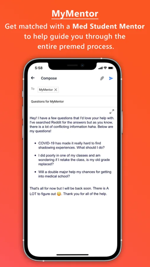 • MyMentor – Instantly communicate with medical students and doctors across the country who truly know what it takes to get accepted into your dream program (because they did it themselves).