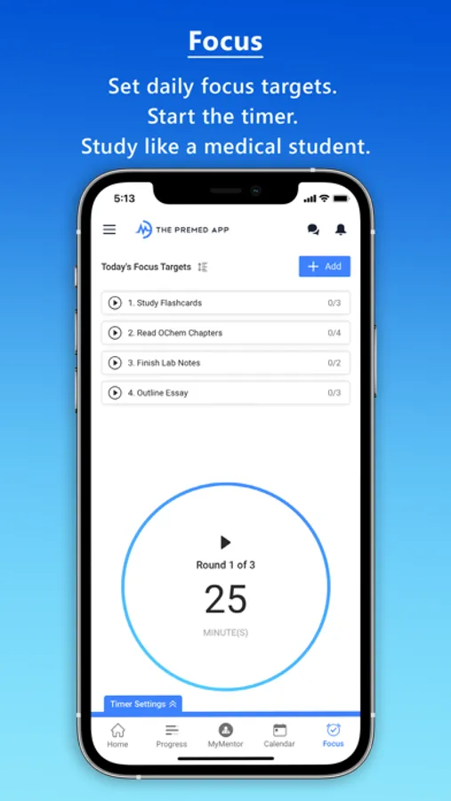 • Focus – Inspired by the study techniques of medical students, this scientifically-proven productivity tool will keep you fresh and focused so you can study longer and more efficiently.
