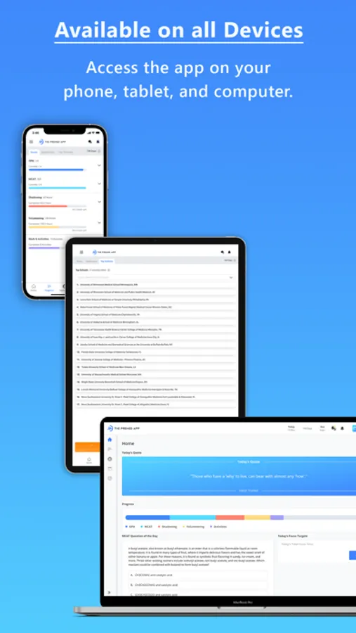 Whether you are just deciding to start this journey or currently applying to medical school, The PreMed App is the daily companion you need.
