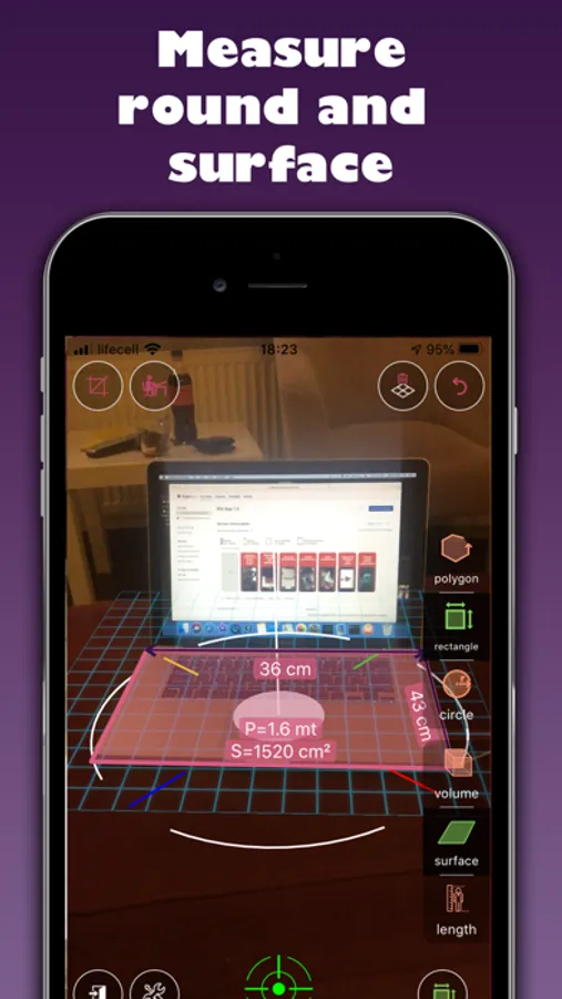 Move your phone around the space to find flat surfaces such as a tabletop or the floor. Point and tap to start your measurement and adjust it accordingly. When finished, tap on measurements to get quick reference to unit conversion, copy, and delete functions.