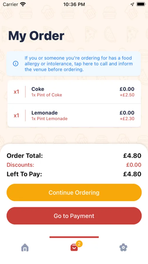 Click on your basket to be guided through Student Orders quick and easy checkout process. Want to pay by card? You can save cards in your account section, to make it easier the next time you visit the app.