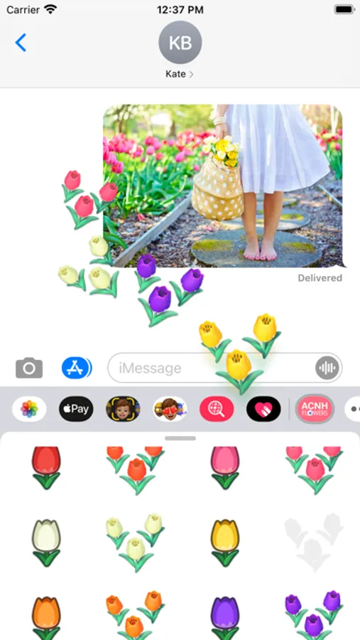 Select the flowers that best express your feelings and send them out as text messages or peel them and place them over bubbles, pictures or other stickers in iMessage. Also use them as camera effects both in iMessage and FaceTime.